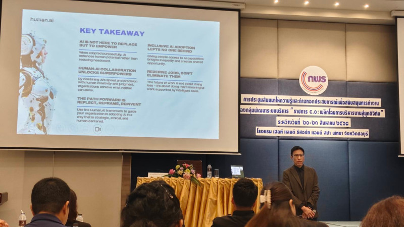 นางสาวพักตร์พิมล สุวรรณโณ ผู้อำนวยการกลุ่มพัฒนาระบบบริหาร ได้มอบหมายให้นางสาวกนกพร เรืองวรรณ นักวิชาการสหกรณ์ปฏิบัติการ เข้าร่วมสัมมนาให้ความรู้และถ่ายทอดประสบการณ์เพื่อสนับสนุนการดำเนินงานของกลุ่มพัฒนาระบบบริหาร "ราชการ 4.0 พลิกโฉมการบริหารงานสู่ยุคดิจิทัล" ระหว่างวันที่ 20-21 สิงหาคม 2568 ณ โรงแรมเฮลท์ แลนด์ รีสอร์ท แอนด์ สปา จังหวัดชลบุรี เพื่อสร้างความรู้ความเข้าใจ แลกเปลี่ยนเรียนรู้ ยกระดับมาตรฐานการพัฒนาระบบราชการ เพิ่มศักยภาพและขีดสมรรถนะตลอดจนเสริมสร้างความสัมพันธ์ระหว่างสำนักงาน ก.พ.ร. กับ เครือข่ายการพัฒนาระบบราชการของส่วนราชการ